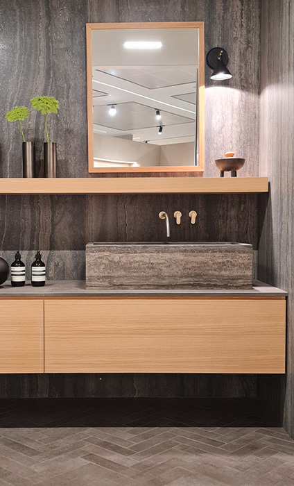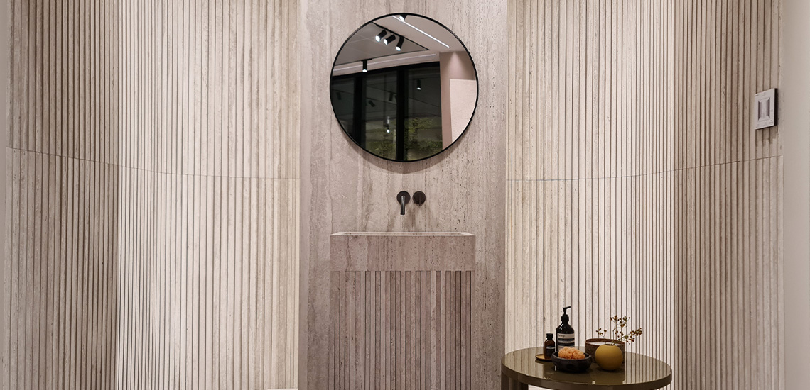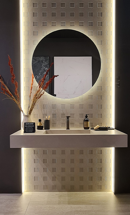 Um dos grandes destaques da feira, o All Over é uma abordagem de design que traz uma estética única e coesa para espaços interiores. A ideia por trás desse estilo é a criação de um ambiente onde um padrão ou textura de revestimento é aplicado de maneira consistente e uniforme em todas as superfícies, criando uma sensação de continuidade visual e harmonia.