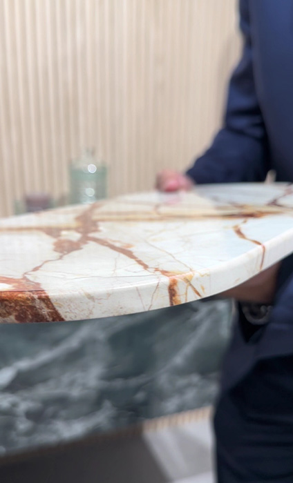 O revestimento Full Vein é uma solução de design interior que proporciona um toque de luxo e sofisticação a qualquer espaço. Inspirado na beleza natural do mármore, é uma interpretação moderna e elegante desse material clássico, trazendo suas deslumbrantes veias e padrões para revestimentos de parede e piso.