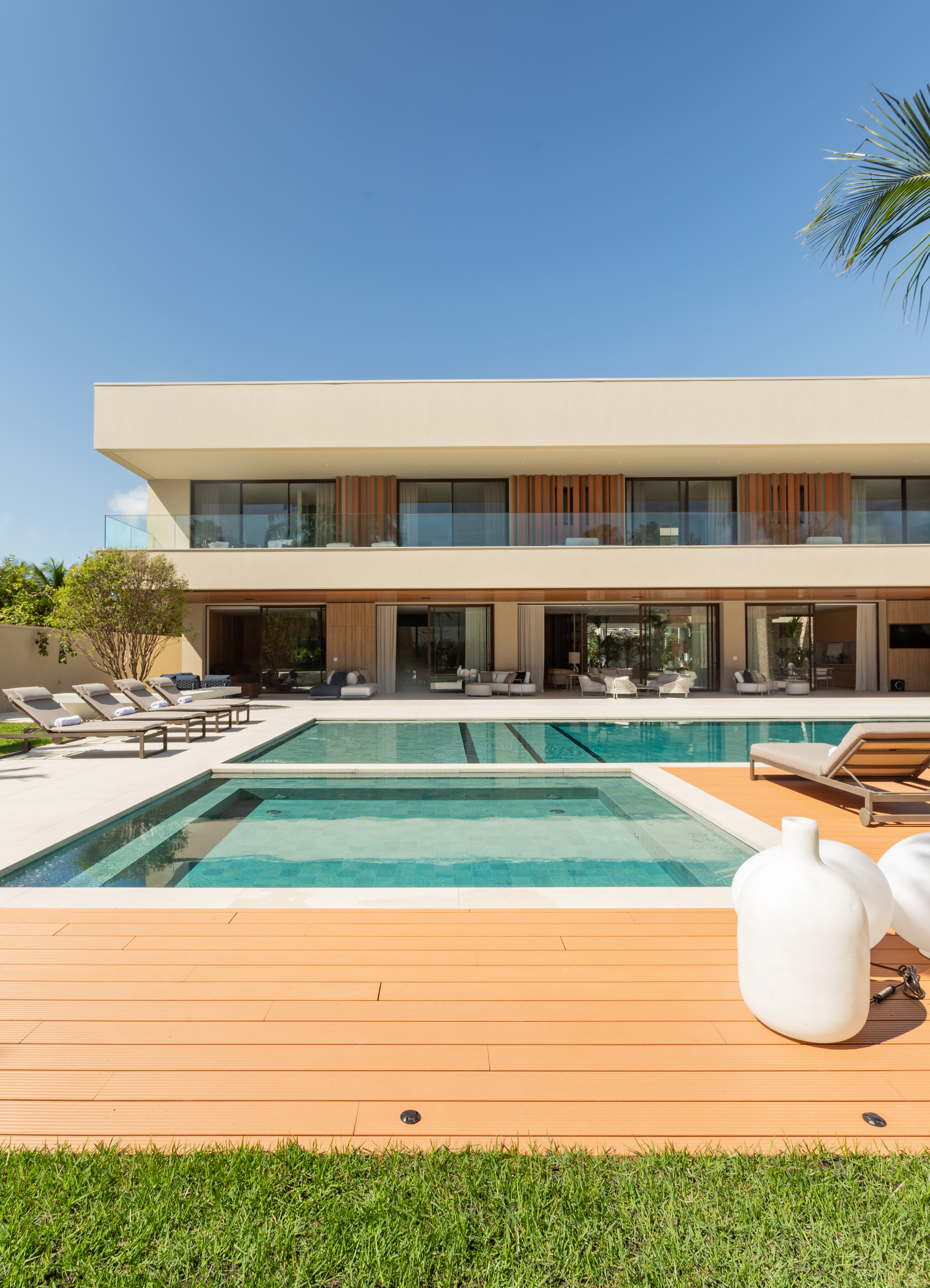 Com uma arquitetura imponente e acolhedora, esta residência com mais de 2.000 m² de área construída, projetada por Patricia Penna, foi idealizada para integrar lazer, conforto e sofisticação — tudo em perfeita harmonia com a paisagem litorânea.